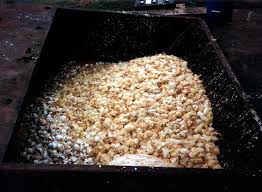 يُنتج كبد الإوز (فوا جرا) من البط والإوز الذين يبلغ عمرهم بضعة أشهر. تُحبس هذه الطيور التعيسة في حظائر مظلمة، وتُجبر على إطعامها كميات كبيرة من الطعام عدة مرات يوميًا. يمسك عامل بالطائر، ويدفع أنبوبًا معدنيًا عبر رقبته. ثم تُضخ مضخة آلية خليطًا من الذرة والزيت مباشرة في حلقه. يستمر هذا لبضعة أسابيع، وخلال هذه الفترة يموت العديد من الطيور بسبب تمزق الحلق وثقبه وانفجار المعدة وأمراض أخرى.