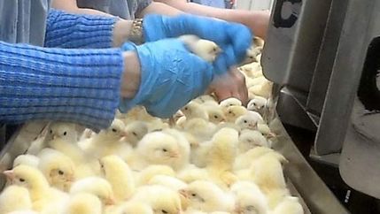 Lorsque la production d’œufs diminue, l’industrie affame les poules et les prive d’eau pendant plusieurs jours. Cette « mue forcée » les choque et leur fait perdre le peu de plumes qui leur reste, ce qui déclenche un nouveau cycle de ponte. De nombreuses poules meurent au cours de ce cycle tortueux. Il n’y a aucun soin vétérinaire. Les poules mourantes sont jetées sur des « tas de cadavres » avec les autres poules mortes. Les poussins mâles ne sont d’aucune utilité pour l’industrie des œufs. Les poussins mâles nouveau-nés sont jetés dans des sacs poubelles en plastique. Ils suffoquent lentement sous le poids des autres poussins déposés dessus. Les poussins mâles sont également broyés pour l’alimentation animale lorsqu’ils sont encore vivants. Ne consommez pas d’œufs ni d’aliments à base d’œufs.